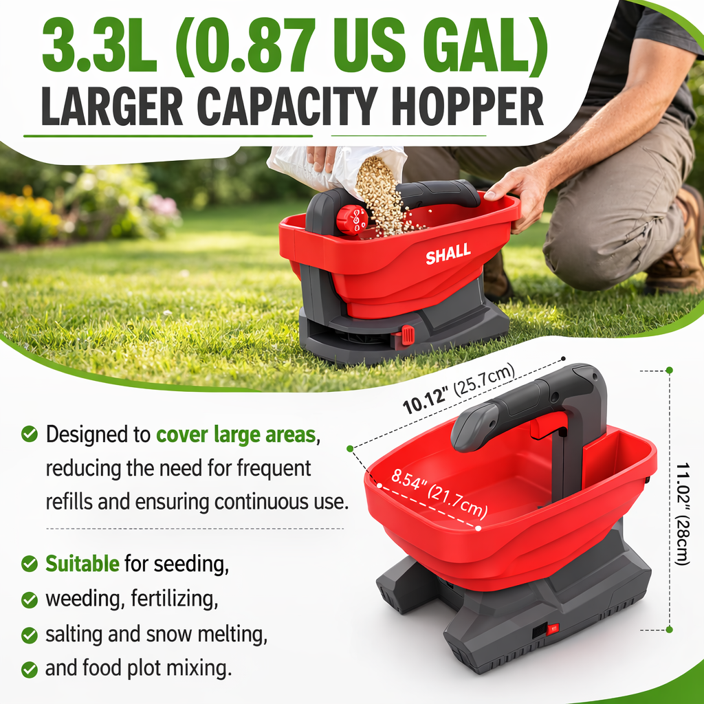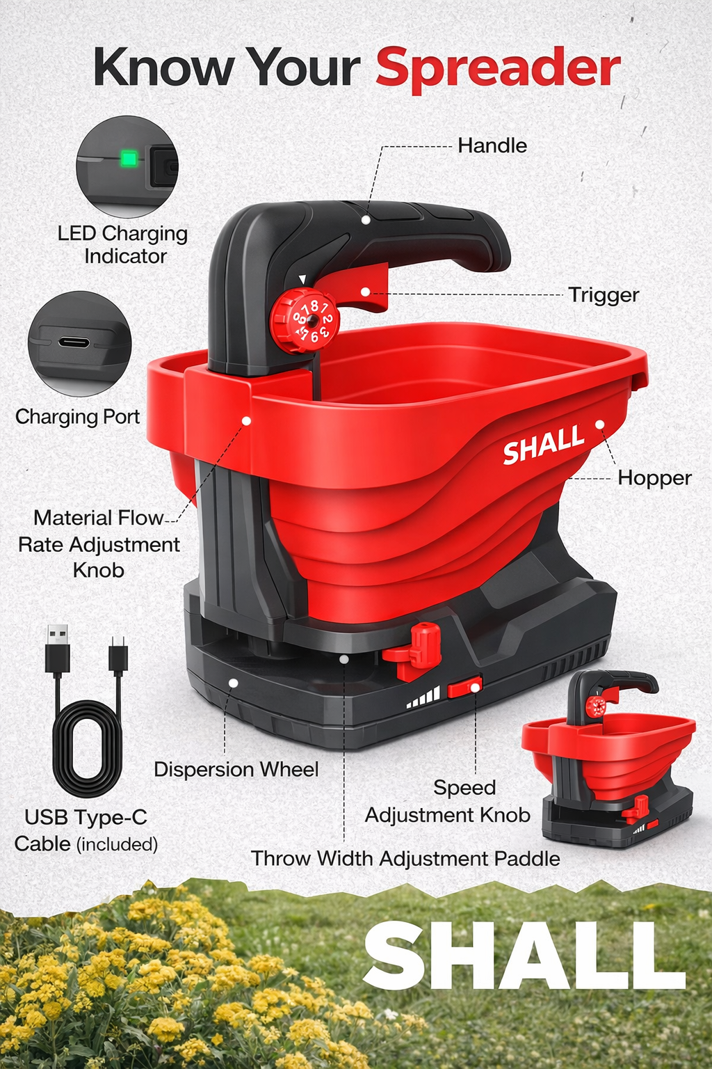 For homeowners who want a practical alternative to a Gas Powered Fertilizer Spreader, the SHALL rechargeable spreader provides a cleaner, quieter, and more convenient option.