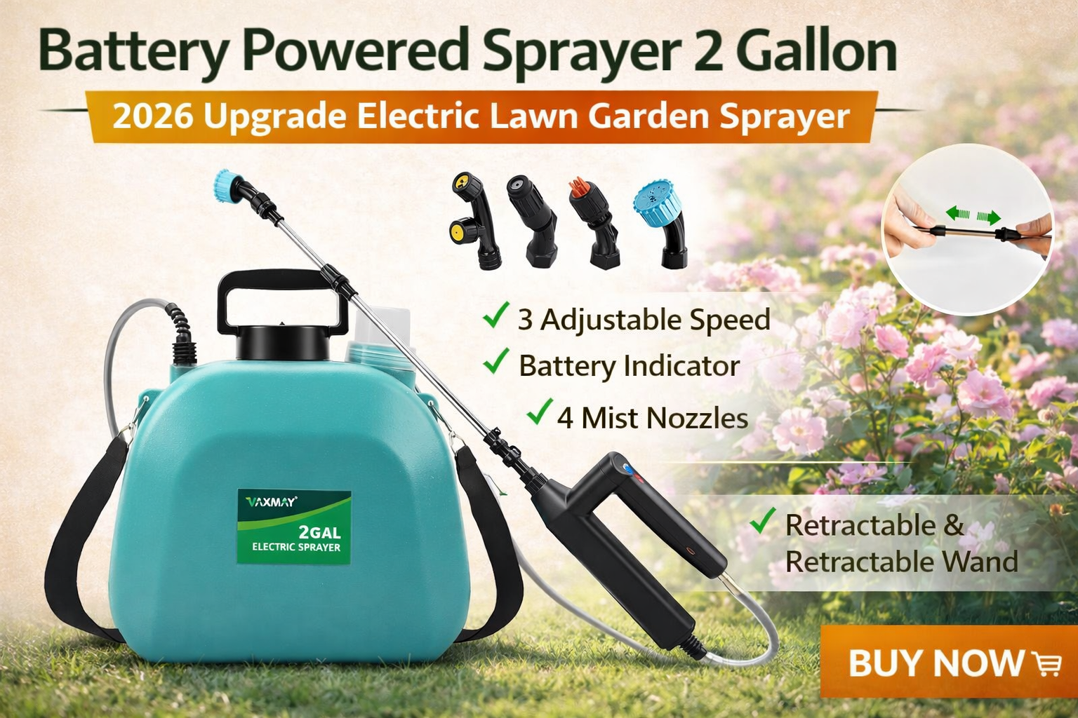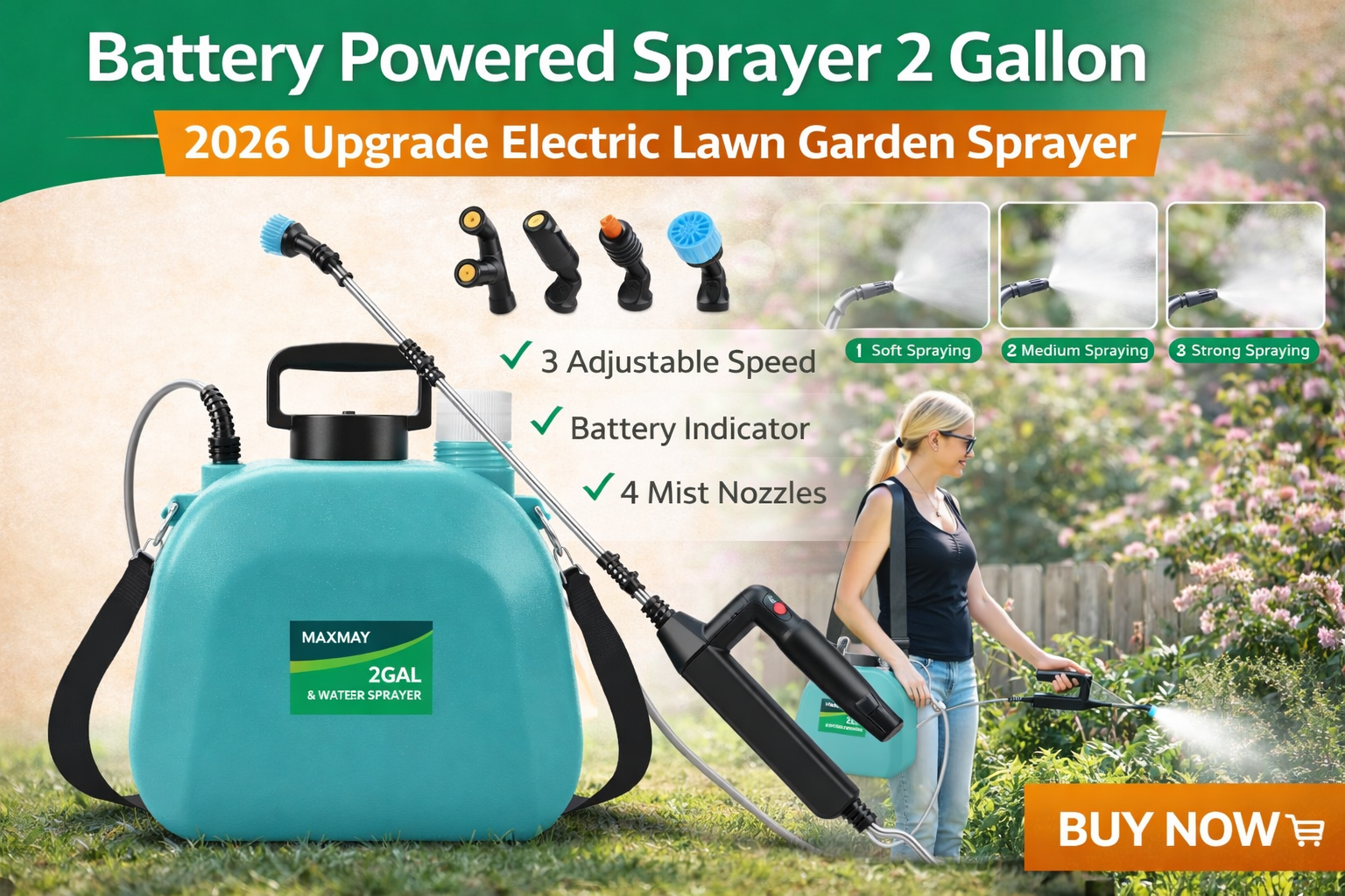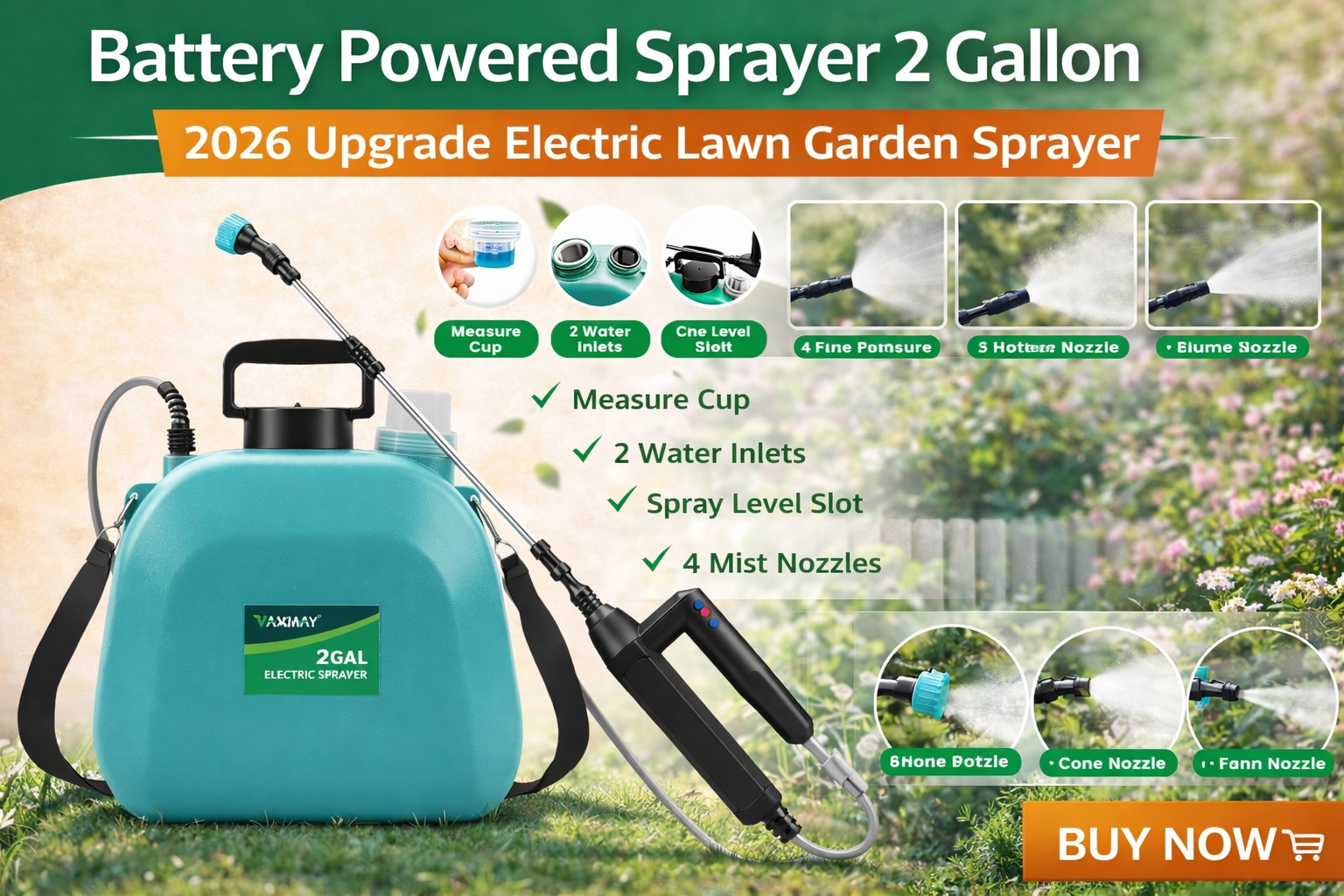Maintaining a healthy garden or lawn requires the right tools, and a Battery Powered Sprayer is one of the most efficient solutions for spraying fertilizers, pesticides, or herbicides. The Battery Powered Sprayer 2 Gallon – 2026 Upgrade Electric Sprayer is designed to make garden spraying easier, faster, and more precise. With three adjustable speeds, a rechargeable battery, and four mist nozzles, this sprayer helps homeowners and gardeners handle everyday lawn care tasks with minimal effort.