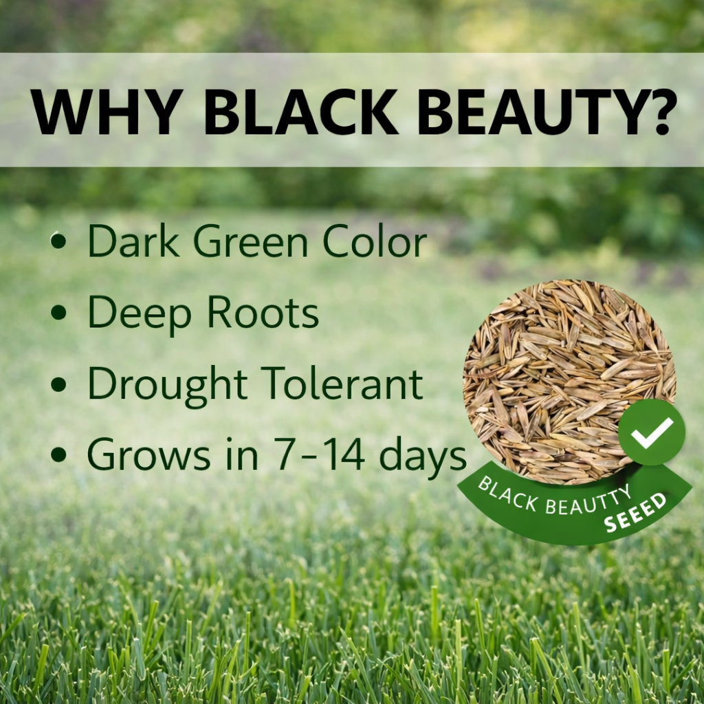 Black Beauty Ultra Grass Seed is a premium cool-season lawn seed blend designed to produce dense, dark green turf quickly. Ideal for new lawns or overseeding, it offers strong drought resistance and fast germination for long-lasting beauty.