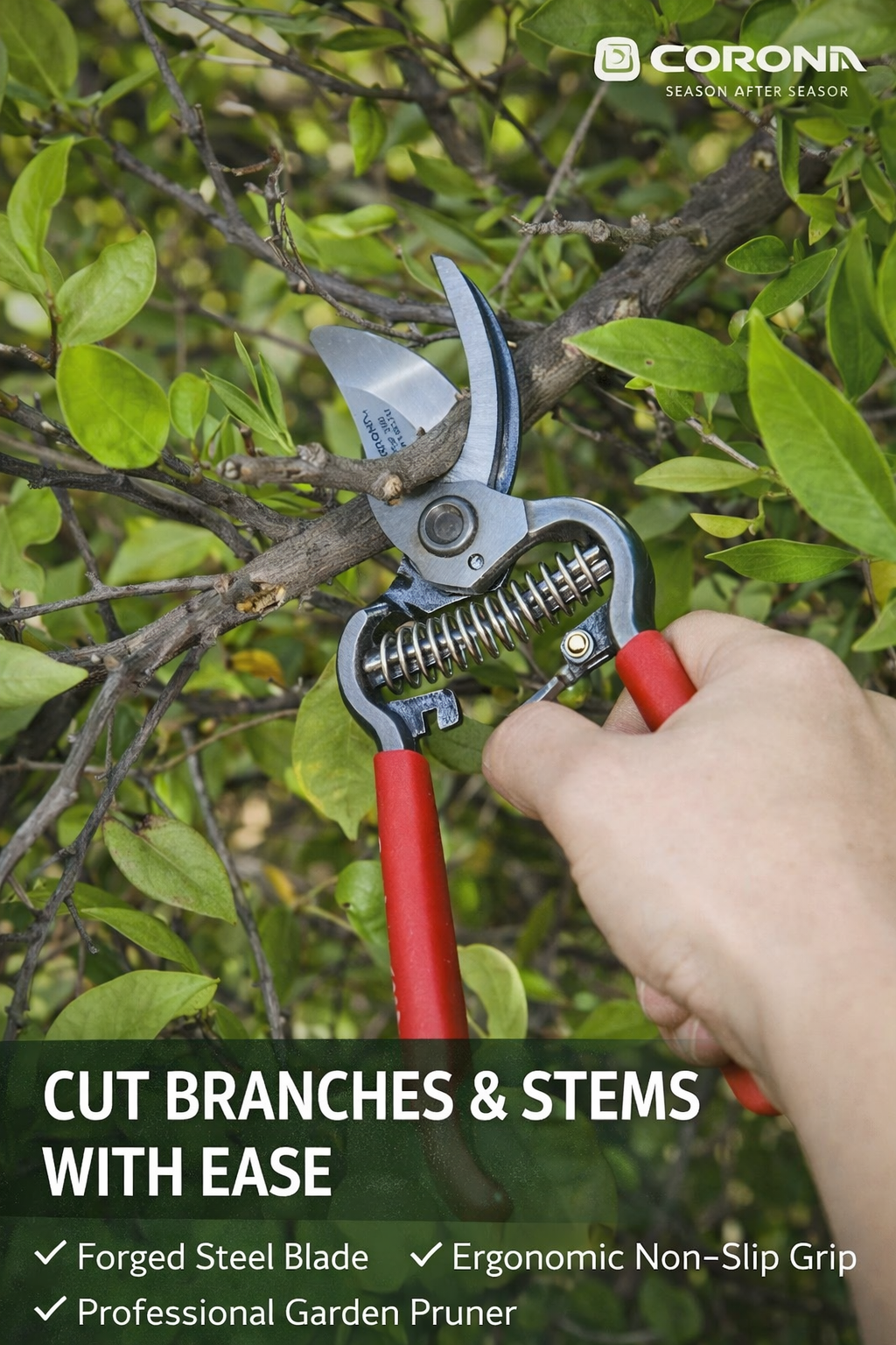 For larger branches, gardeners often use tools like a corona pole pruner or corona tree pruner. However, for everyday pruning tasks around the garden, a handheld pruner like the Corona BP 3180D Bypass Pruner offers better control and precision.