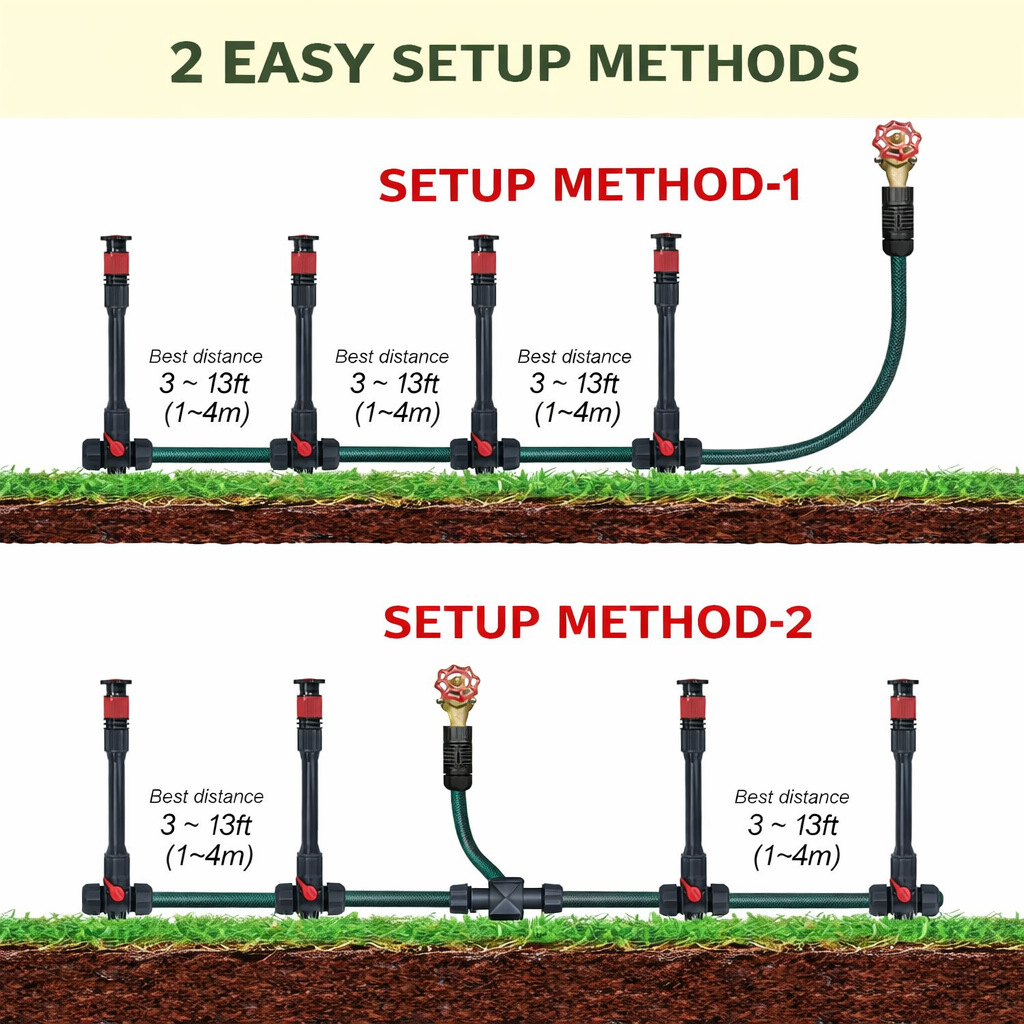 If you’ve ever wondered how to set irrigation sprinkler heads correctly or how to set up an irrigation sprinkler in my garden, this easy-to-install kit provides a practical solution. Its modular design allows users to customize watering coverage and even create a solid set sprinkler irrigation layout for larger garden spaces.